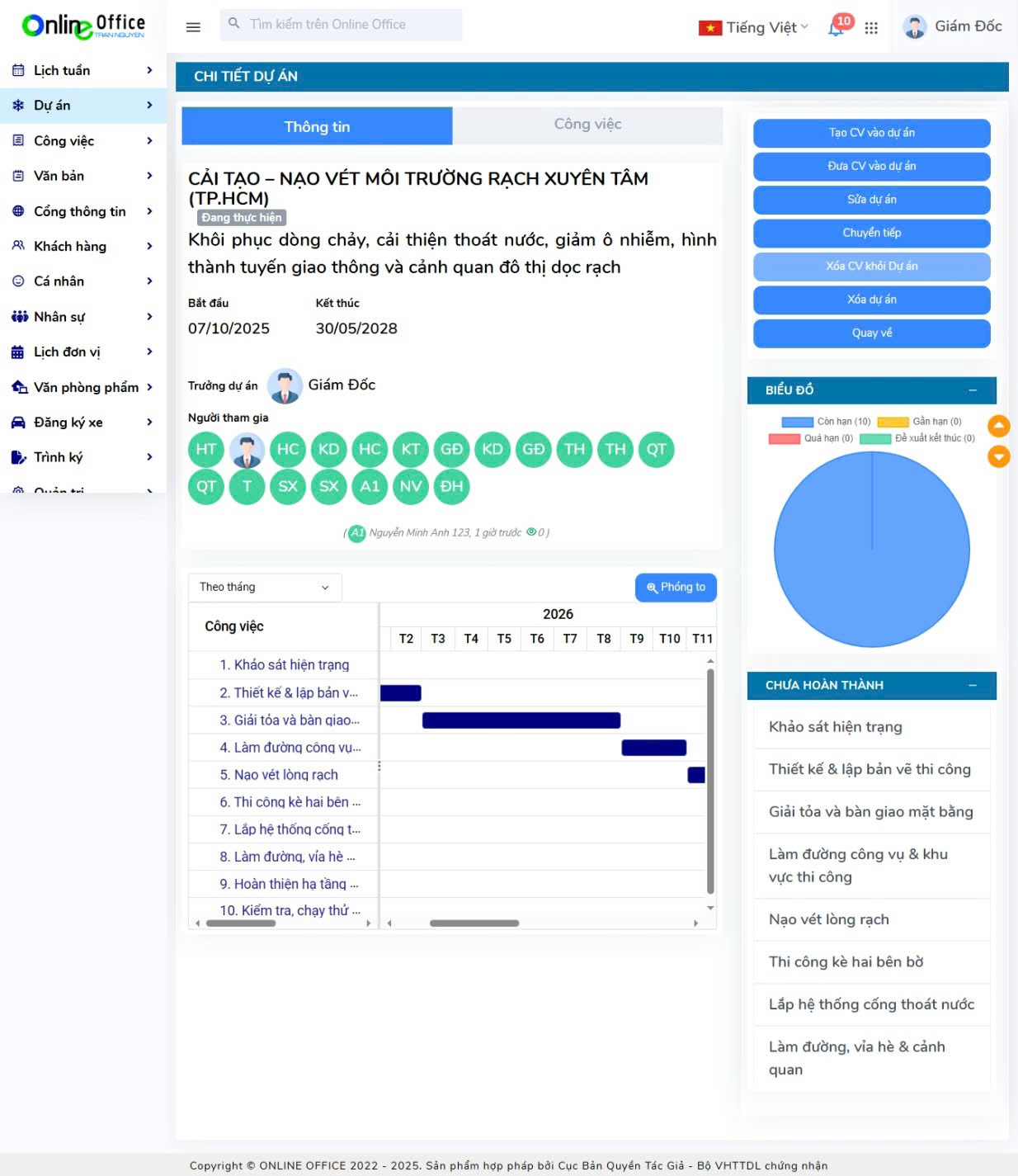 Giao diện phần mềm thân thiện, dễ thao tác. Nhắc việc tự động nên nhân sự không sợ quên và trễ việc với đối tác và nội bộ. Kiểm soát chặt chẽ tiến độ từng công việc, từng dự án của từng cá nhân, từng nhóm hiệu quả. Lưu trữ hồ sơ dự án, tài liệu khoa học, tìm kiếm nhanh chóng. Vận hành dựa trên nền tảng điện toán đám mây nên dữ liệu an toàn. Có dịch vụ lập trình theo yêu cầu phù hợp với khách hàng.
