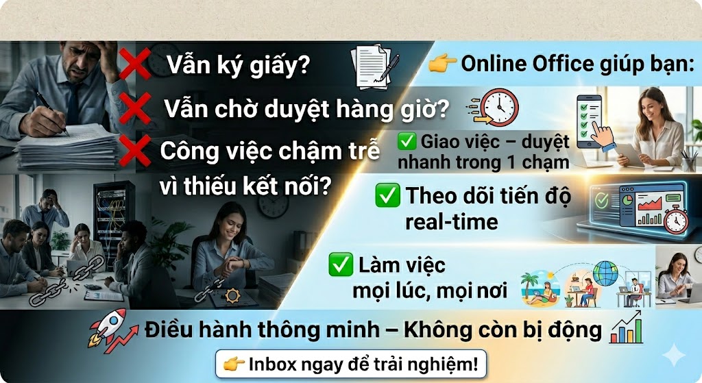 Chúng tôi là những chuyên gia có kinh nghiệm tư vấn, triển khai thành công hơn 10.000+ doanh nghiệp trên cả nước, Online Office cam kết mang đến cho doanh nghiệp phần mềm quản trị có chất lượng cao cấp hàng đầu bằng chính sự trân trọng và tinh thần trách nhiệm cao của mình đối với sự phát triển của doanh nghiệp.