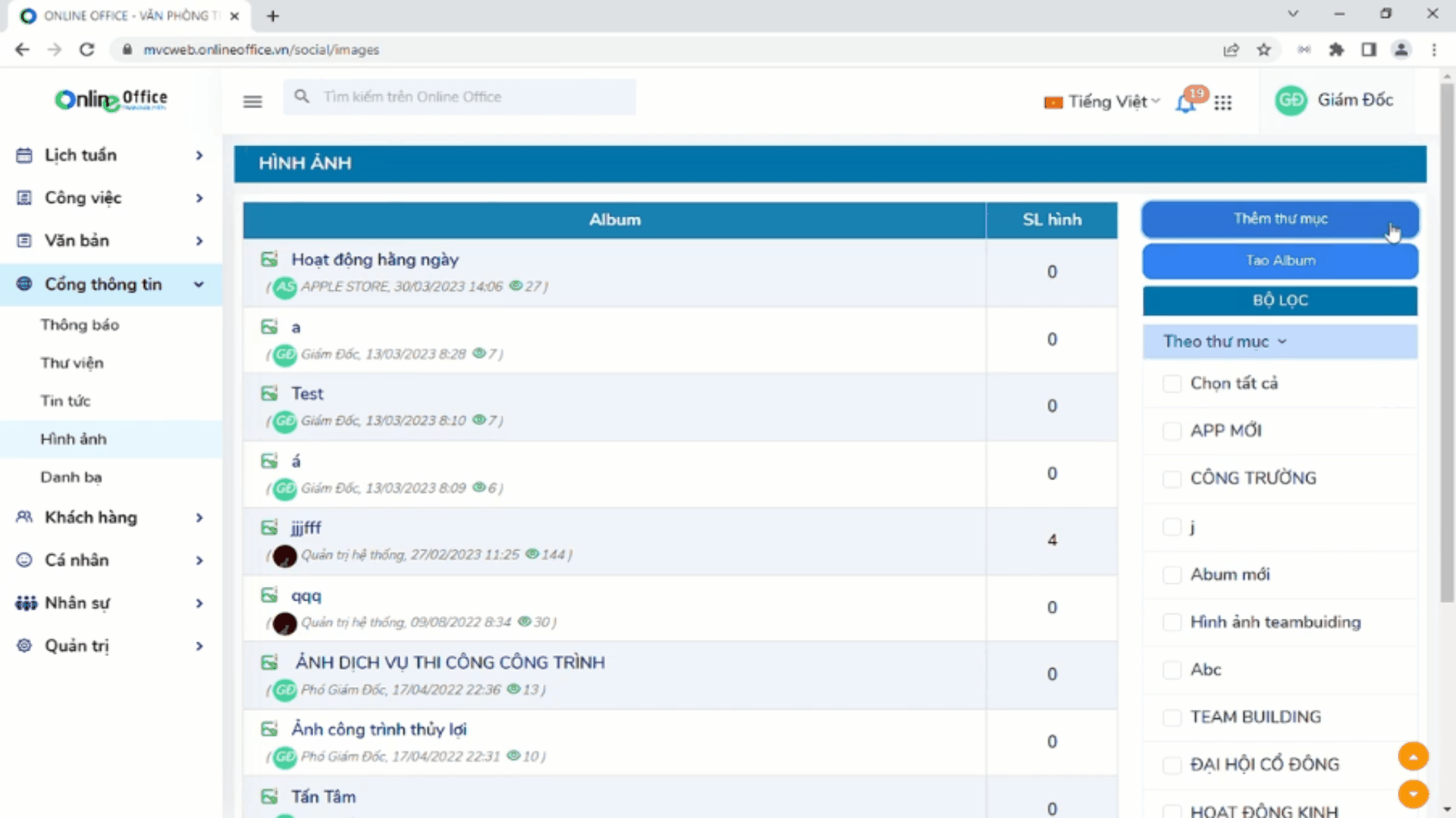 Module hình ảnh là nơi lưu trữ các hình ảnh đẹp của doanh nghiệp và mọi người có thể truy xuất khi cần thiết.Sau đây là cách để tạo Album nhằm lưu trữ ảnh: