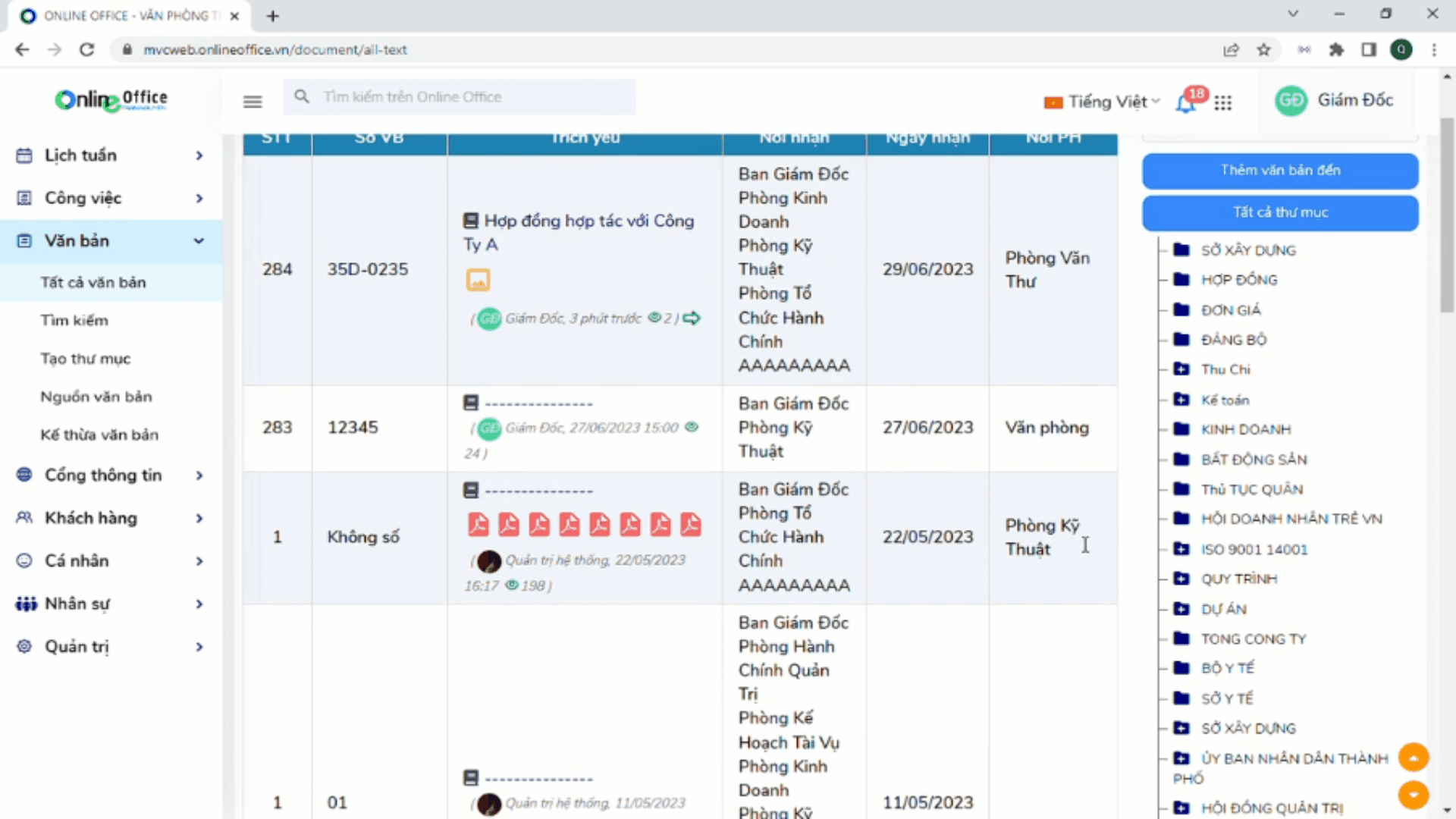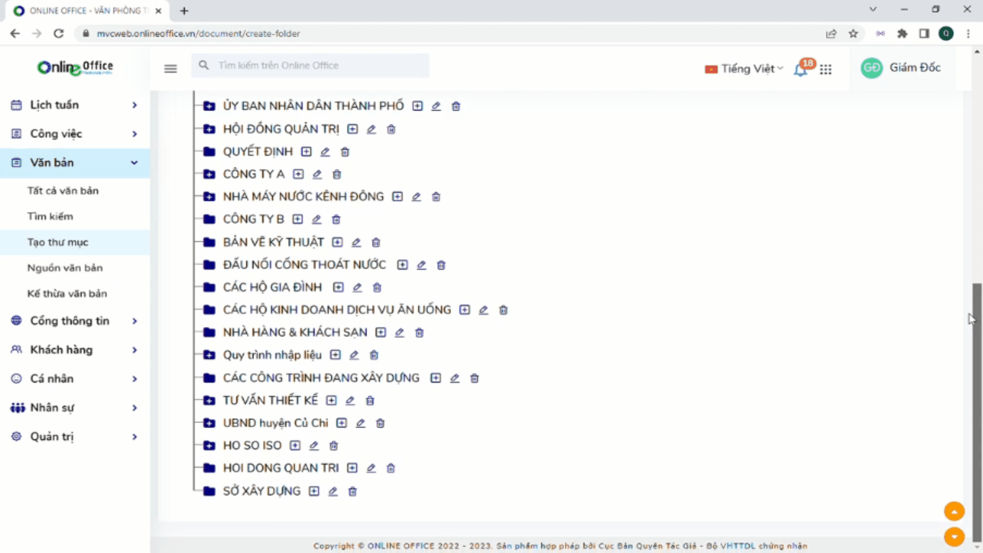 Bước 1: Vào module ‘Văn Bản” và bấm ‘Tạo Thư Mục”