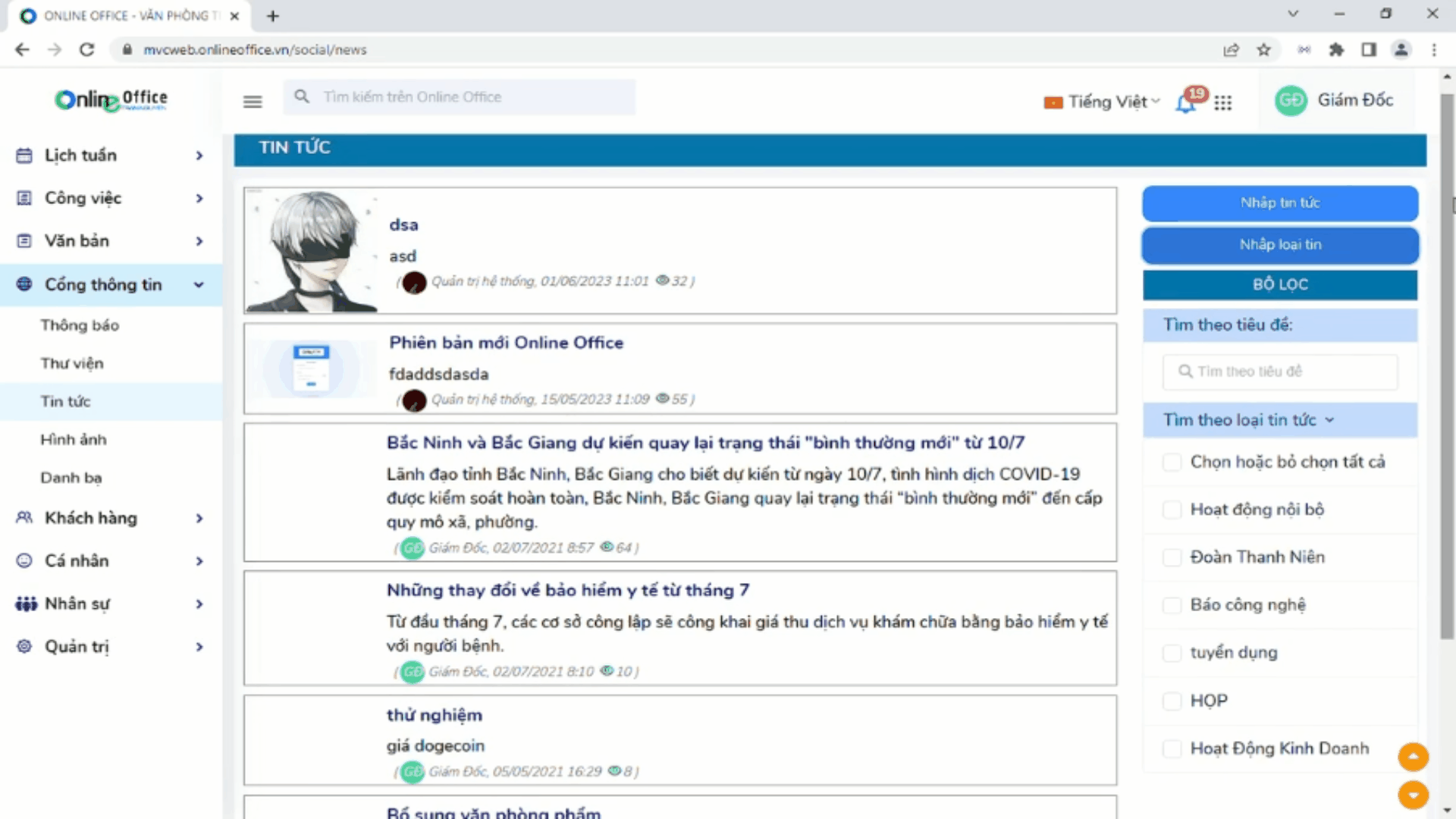 Module tin tức giúp doanh nghiệp truyền tải các hoạt động nội bộ, văn hóa đến các thành viên trong doanh nghiệp.