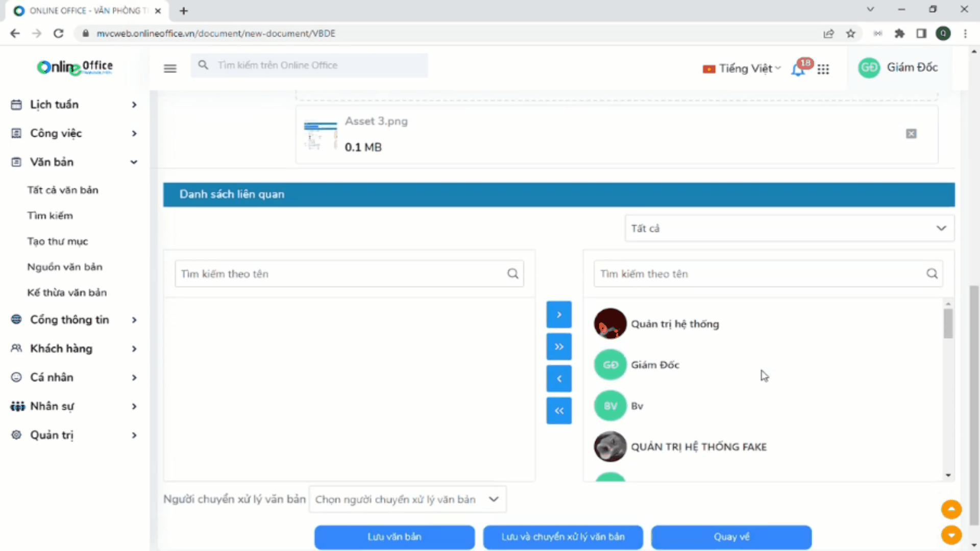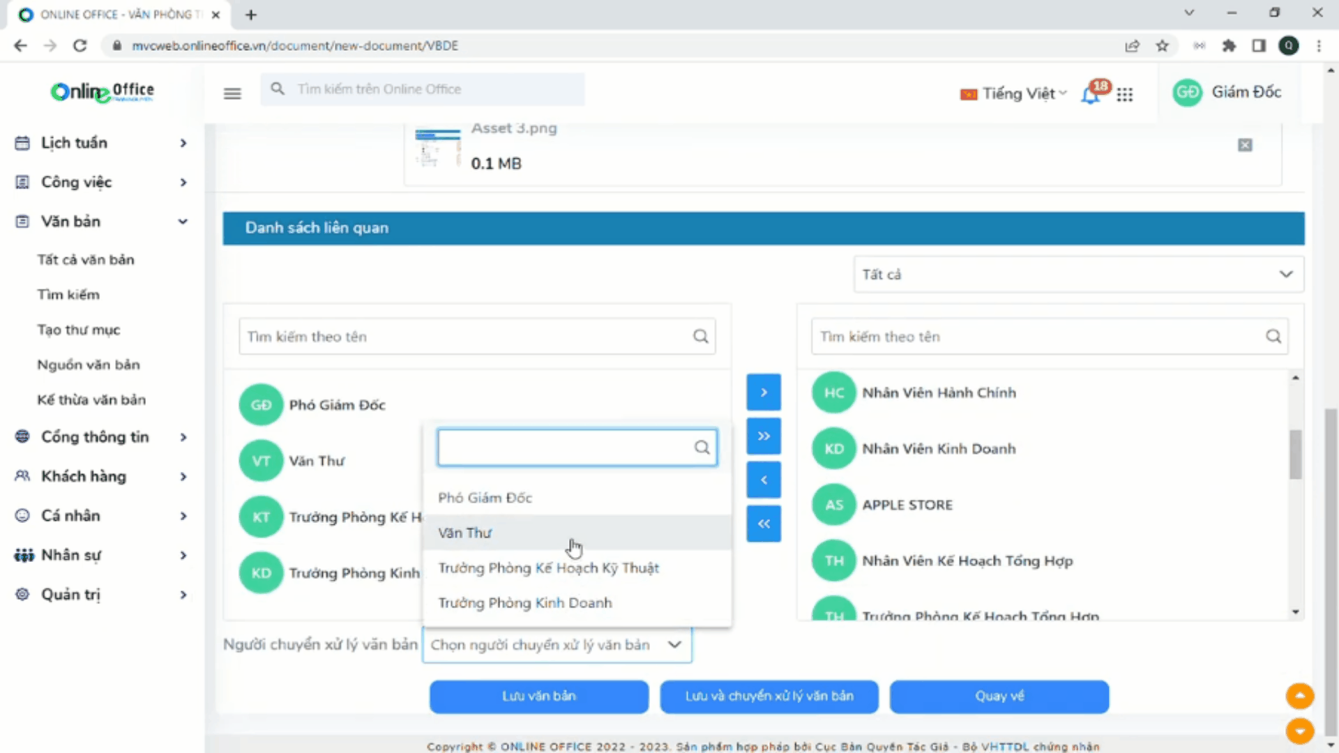 Bước 6: Chọn người chuyển xử lý và bấm “Lưu”
